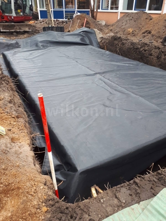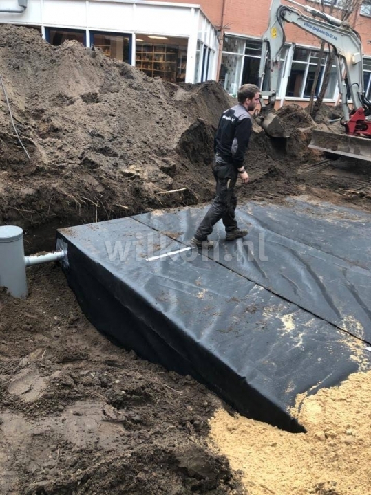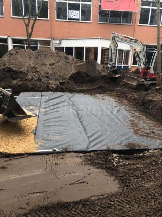 Drainage kratten aangelegd om zo het regenwater op te vangen en weer rustig te kunnen laten bezinken in de grond. Daarnaast hebben wij een bron met pomp gemaakt om zo het grondwater in droge tijden weer op te pompen. En zo is de cirkel weer rond en helpen we de natuur.